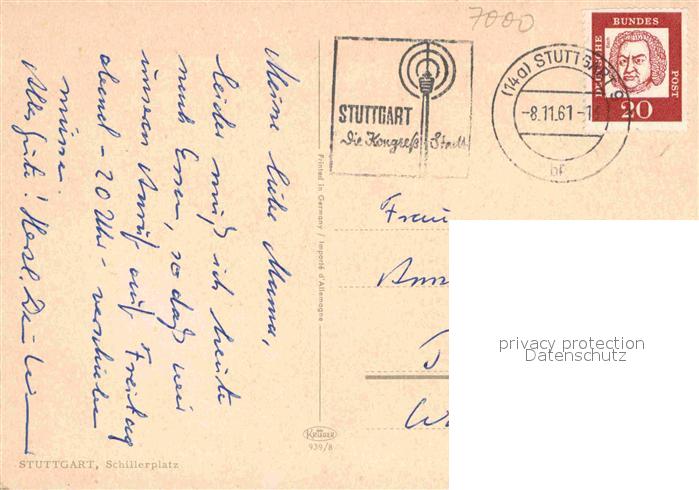 72743604 alte Postkarte STUTTGART CITY Schillerplatz postalisch gelaufen Erhaltung siehe scans [LiesaD40] KatCode: 11110008111000