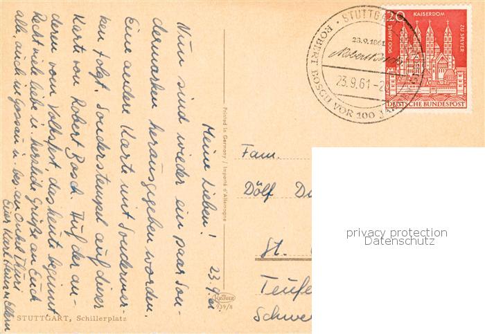 73834270 STUTTGART CITY Schillerplatz postalisch gelaufen Erhaltung siehe scans [WerneD78] alte Postkarte Wern Katcode 11110008111000