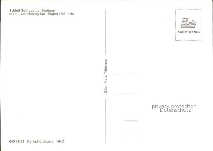 72232933 STUTTGART CITY Schloss Solitude postalisch nicht gelaufen Erhaltung siehe scans KatCode: 11110008111000