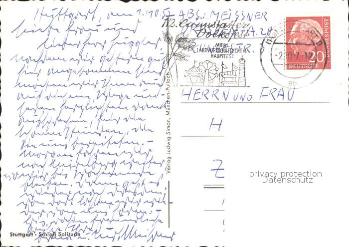 71941983 alte Postkarte STUTTGART CITY Schloss Solitude postalisch gelaufen Erhaltung siehe scans KatCode: 11110008111000