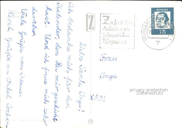 72353992 alte Postkarte STUTTGART CITY Schlossplatz postalisch gelaufen Erhaltung siehe scans KatCode: 11110008111000
