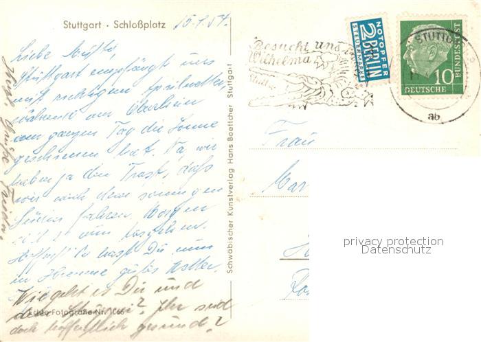 73044152 alte Postkarte STUTTGART CITY Schlossplatz postalisch gelaufen Erhaltung siehe scans [WerneD78] KatCode: 11110008111000