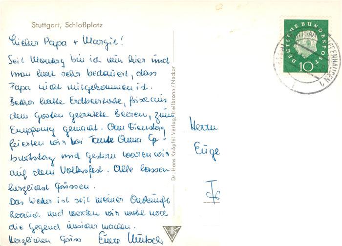 73903278 STUTTGART CITY Schlossplatz postalisch gelaufen Erhaltung siehe scans [FriedD77] alte Postkarte Frie Katcode 11110008111000