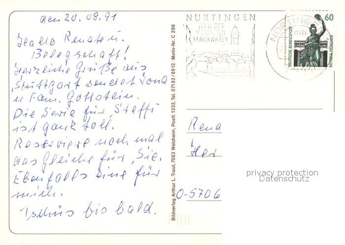 73101058 alte Postkarte STUTTGART CITY Schlossplatz Fernsehturm Flugplatz Teck Aichelberg Viadukt Ulmer Donau Muenster Nuertingen Wiesensteig postalisch gelaufen Erhaltung siehe scans [WerneD78] KatCode: 11110008111000