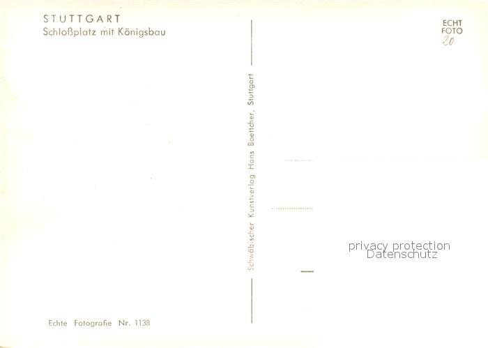 72968718 STUTTGART CITY Schlossplatz mit Koenigsbau Jubilaeumssaeule Brunnen postalisch nicht gelaufen Erhaltung siehe scans [FriedD77] KatCode: 11110008111000