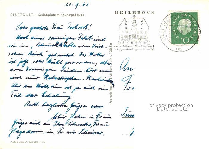 72630558 alte Postkarte STUTTGART CITY Schlossplatz mit Kunstgebaeude postalisch gelaufen Erhaltung siehe scans [LiesaD40] KatCode: 11110008111000