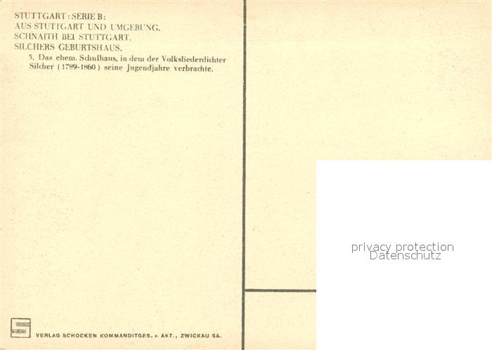 73097233 STUTTGART CITY Schnaith Silchers Geburtshaus postalisch nicht gelaufen Erhaltung siehe scans [KathaD81] KatCode: 11110008111000