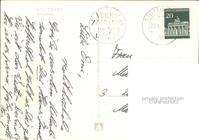 72024280 alte Postkarte STUTTGART CITY Schulstrasse postalisch gelaufen Erhaltung siehe scans KatCode: 11110008111000