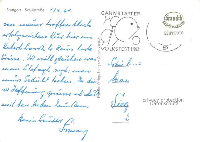 74105098 alte Postkarte STUTTGART CITY Schulstrasse postalisch gelaufen Erhaltung siehe scans [FriedD77] KatCode: 11110008111000