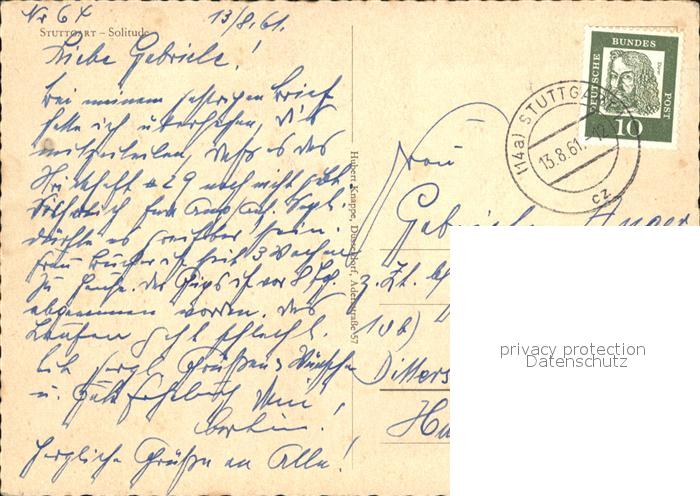 72574040 alte Postkarte STUTTGART CITY Solitude postalisch gelaufen Erhaltung siehe scans [KathaD79] KatCode: 11110008111000