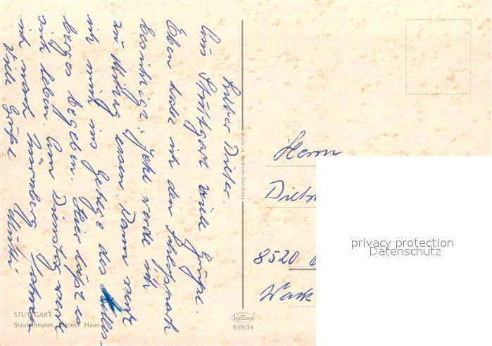 72717529 STUTTGART CITY Staatstheater Kleines Haus postalisch nicht gelaufen Erhaltung siehe scans [LiesaD40] KatCode: 11110008111000