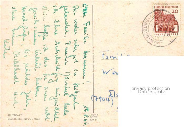 72673273 alte Postkarte STUTTGART CITY Staatstheater Kleines Haus postalisch gelaufen Erhaltung siehe scans [WerneD78] KatCode: 11110008111000