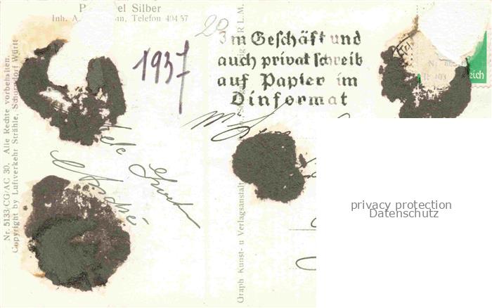 74095247 alte Postkarte STUTTGART CITY Stadthalle Parkhotel Silber und Villa Berg postalisch gelaufen Fliegeraufnahme Erhaltung siehe scans [FriedD77] KatCode: 11110008111000