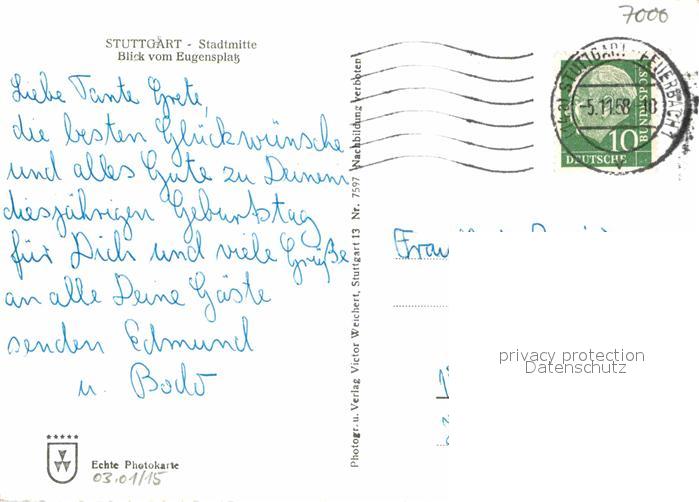 72915287 alte Postkarte STUTTGART CITY Stadtmitte postalisch gelaufen Erhaltung siehe scans [WerneD78] KatCode: 11110008111000