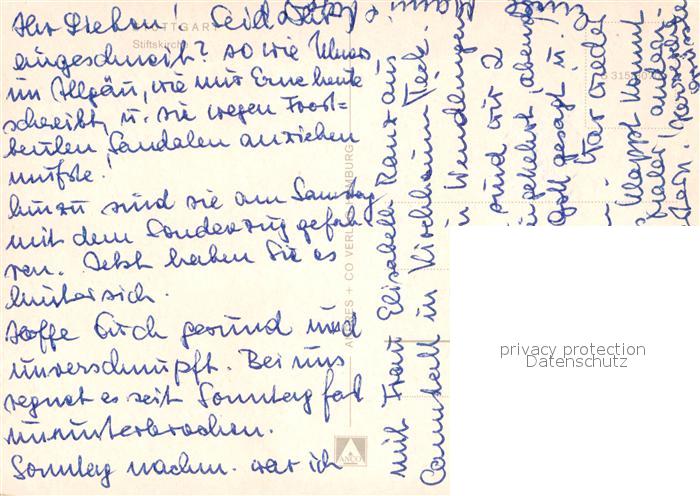 72981571 STUTTGART CITY Stiftskirche postalisch nicht gelaufen Erhaltung siehe scans [LiesaD40] KatCode: 11110008111000