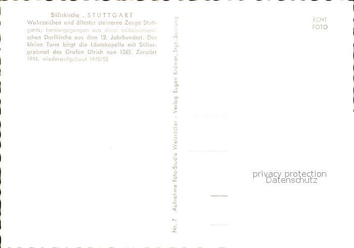 72506258 STUTTGART CITY Stiftskirche postalisch nicht gelaufen Erhaltung siehe scans KatCode: 11110008111000