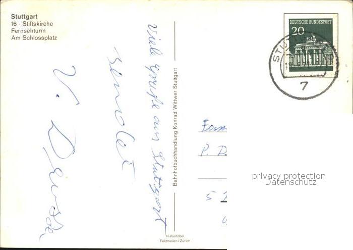 72574241 alte Postkarte STUTTGART CITY Stiftskirche Fernsehturm Schlossplatz postalisch gelaufen Erhaltung siehe scans [KathaD79] KatCode: 11110008111000