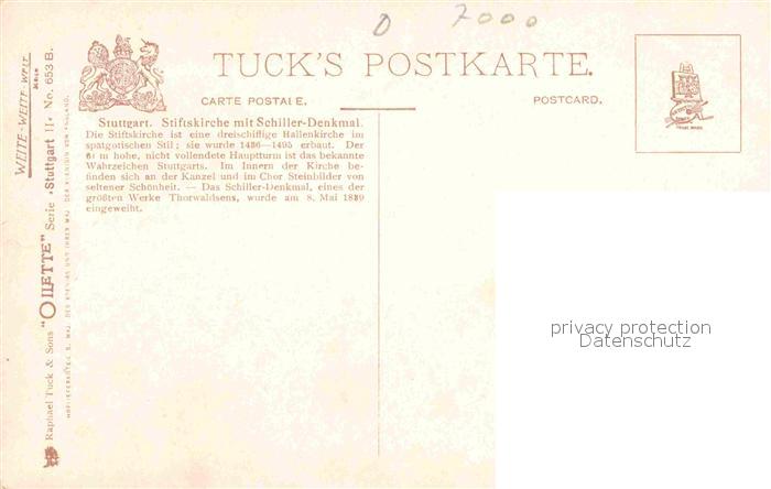 72705995 STUTTGART CITY Stiftskirche Schiller Denkmal Kuenstlerkarte Oilette Serie No 653 B Tucks Postkarte Geschichte postalisch nicht gelaufen Erhaltung siehe scans [FriedD77] KatCode: 11110008111000