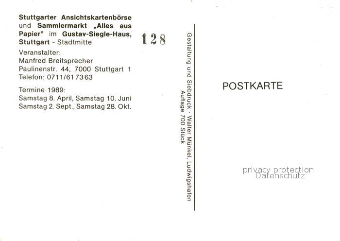 73863552 STUTTGART CITY Stuttgarter Ansichtskartenboerse und Sammlermarkt postalisch nicht gelaufen Erhaltung siehe scans [WerneD78] Wern Katcode 11110008111000