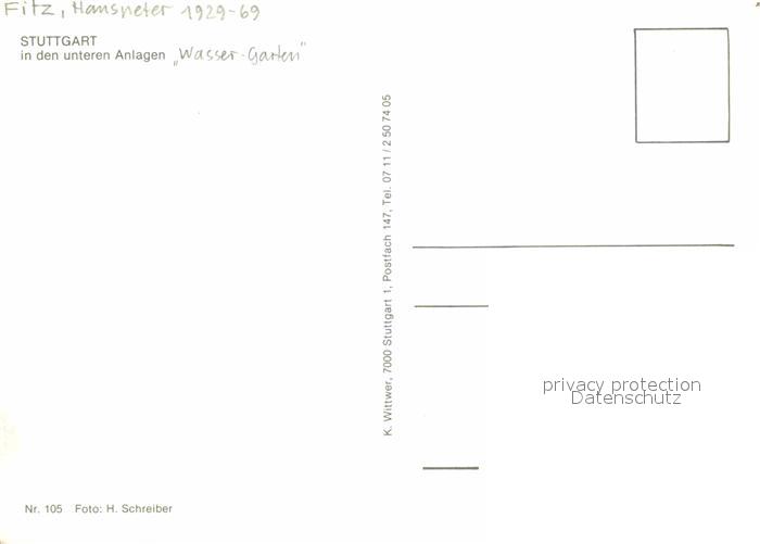 72860006 STUTTGART CITY Wassergarten postalisch nicht gelaufen Erhaltung siehe scans [LiesaD40] KatCode: 11110008111000