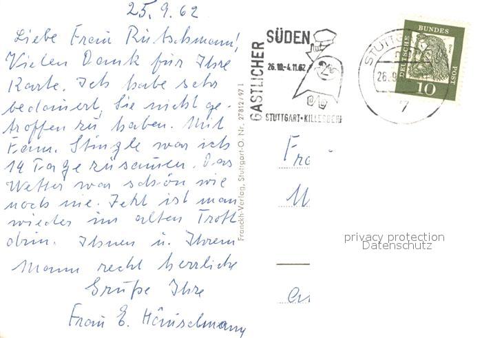 73135033 alte Postkarte Stuttgart Fliegeraufnahme mit Fernsehturm Div Sehenswuerdigkeiten postalisch gelaufen Erhaltung siehe scans [FriedD77] KatCode: 11110008111000