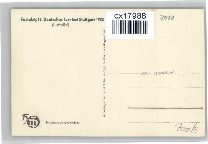 30725526 Stuttgart Fliegeraufnahme Turnfest postalisch nicht gelaufen KatCode: 11110008111000