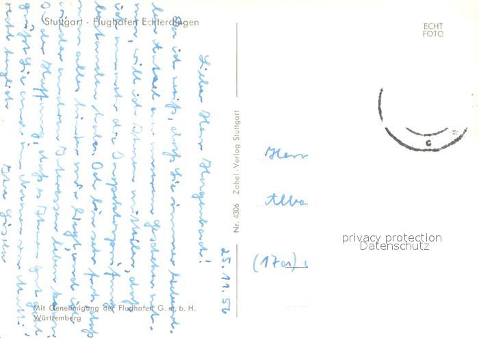 33624180 alte Postkarte Stuttgart Flughafen Echterdingen Flugzeug postalisch gelaufen Erhaltung siehe scans [PaolaD17] KatCode: 11110008111000