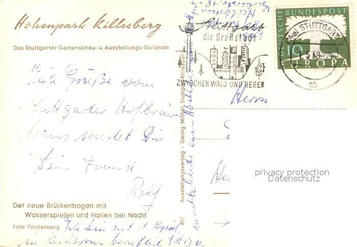 73357563 alte Postkarte Stuttgart Gartenschau und Ausstellungsgelaende Nachtaufnahme postalisch gelaufen Erhaltung siehe scans [FriedD77] KatCode: 11110008111000