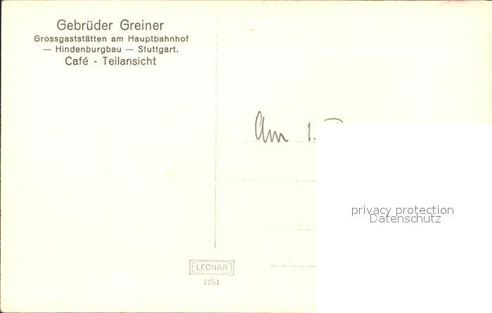 31714534 Stuttgart Grossgasstaette am Hauptbahnhof Hindenburgbau Gebrueder Greiner postalisch nicht gelaufen Erhaltung siehe scans KatCode: 11110008111000