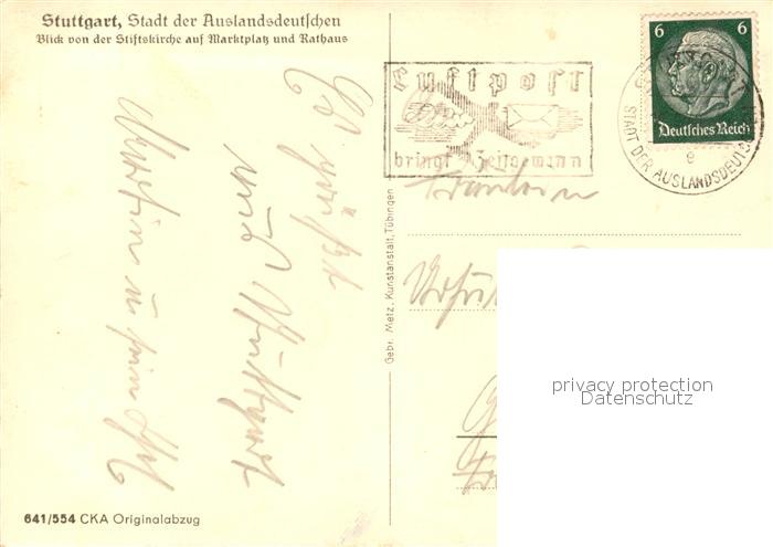 73561991 alte Postkarte Stuttgart Marktplatz Rathaus postalisch gelaufen Erhaltung siehe scans [KathaD81] KatCode: 11110008111000