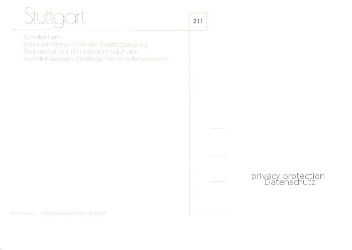 73175965 Stuttgart Schellenturm postalisch nicht gelaufen Erhaltung siehe scans [PaolaD17] KatCode: 11110008111000