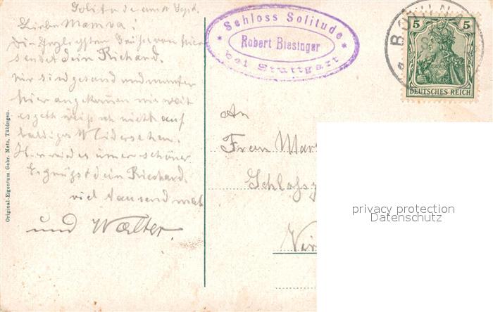 73559580 alte Postkarte Stuttgart Schloss Solitude Erbauer Herzog Karl postalisch gelaufen Erhaltung siehe scans [FriedD77] KatCode: 11110008111000