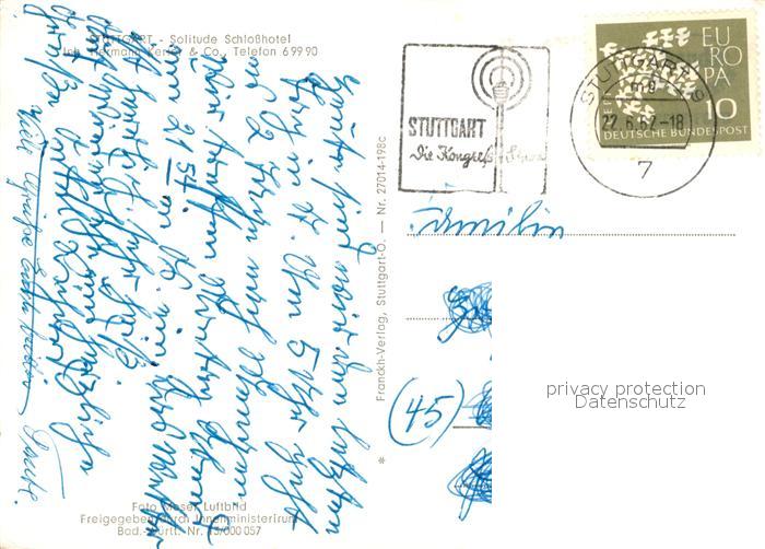73300179 alte Postkarte Stuttgart Schloss Solitude Fliegeraufnahme postalisch gelaufen Erhaltung siehe scans [PaolaD17] KatCode: 11110008111000