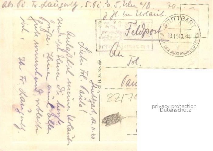 73279580 alte Postkarte Stuttgart Schlosshof Alte Schloss postalisch gelaufen Feldpost Erhaltung siehe scans [NatalD47] KatCode: 11110008111000