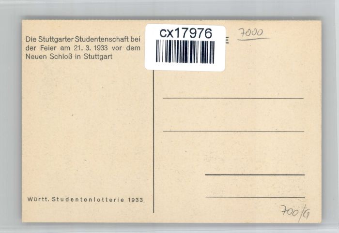 30725514 Stuttgart Studentenschaft Neuen Schloss postalisch nicht gelaufen KatCode: 11110008111000