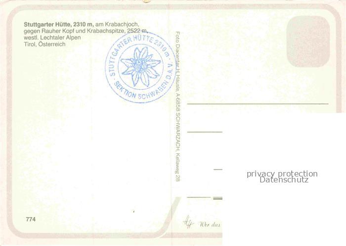 74099832 Stuttgarterhuette 2303m Zuers Vorarlberg AT am Krabachjoch Roggspitze und Erlijoch Valluga Pazieljoch postalisch nicht gelaufen Erhaltung siehe scans [WerneD78] KatCode: 11390
