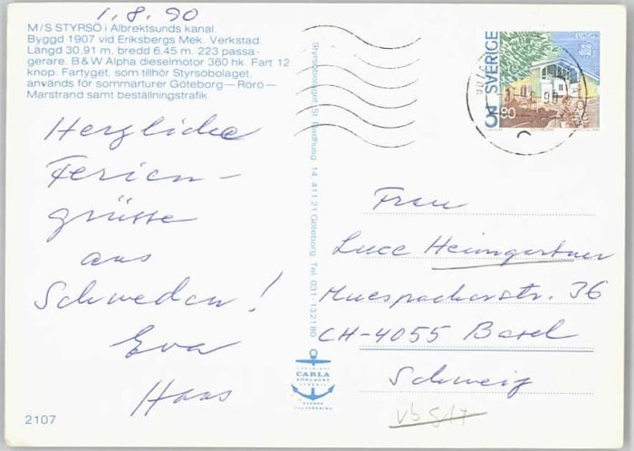 old postcard Styrsoe lbrektsunds Kanal postalisch gelaufen