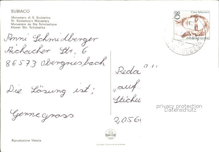 old postcard Subiaco Italien Monastero di Santa Scolastica Kloster postalisch gelaufen Erhaltung siehe scans