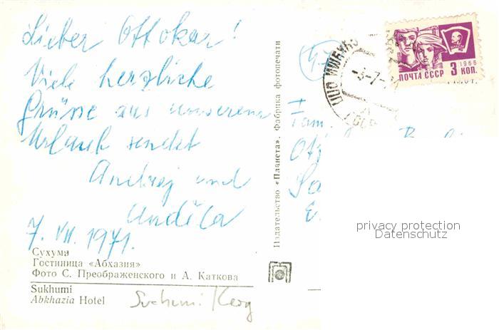 old postcard Suchumi Hotel Abchasija postalisch gelaufen Erhaltung siehe scans [NatalD47]