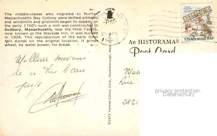 72780016 old postcard Sudbury Massachusetts Bay Colony windmills and gristmills postalisch gelaufen Erhaltung siehe scans [LiesaD40] KatCode: 14140230000000