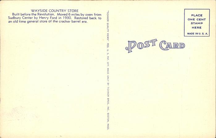 11112445 Sudbury Massachusetts Wayside Country Store Wayside Inn postalisch nicht gelaufen KatCode: 14140230000000