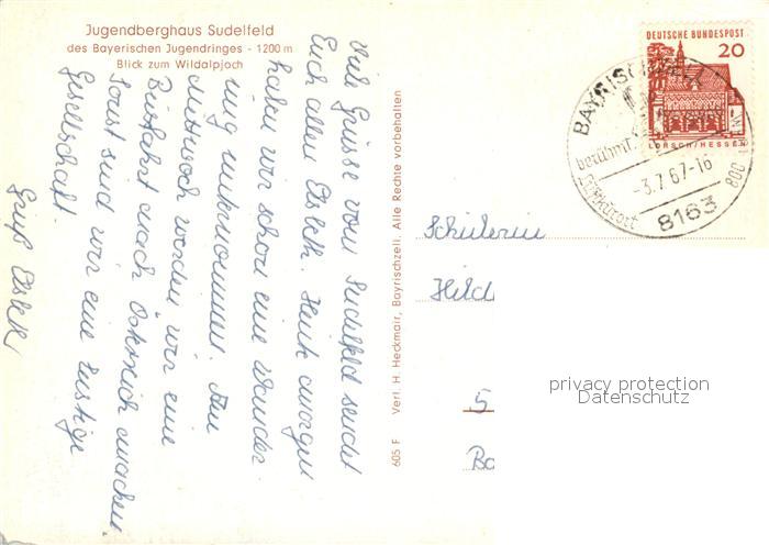 73042376 alte Postkarte Sudelfeld Jugendberghaus des Bayerischen Jugendringes Wildalpjoch Tennisplatz postalisch gelaufen Erhaltung siehe scans [FriedD77] KatCode: 11110009182112