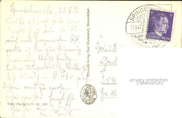 old postcard Sudetengau St. Peter Spindelmuehle postalisch gelaufen Erhaltung siehe scans