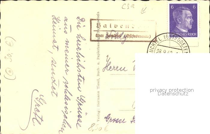 12162666 old postcard Sudetenland Region Zauchtel postalisch gelaufen Erhaltung siehe scans KatCode: 11520