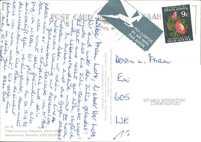 old postcard Suedafrika Southafrica RSA Tribal Ceremony Nkandhla Zululand postalisch gelaufen Erhaltung siehe scans