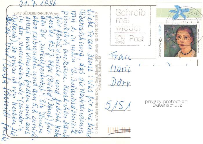 73022682 alte Postkarte Suederbrarup Kirche Strassenpartien Schwanenteich Dampflok postalisch gelaufen Erhaltung siehe scans [WerneD78] KatCode: 11110001059083