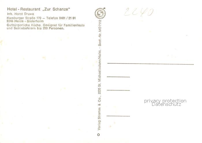73086228 Suederholm Hotel Restaurant Zur Schanze postalisch nicht gelaufen Erhaltung siehe scans [KathaD81] KatCode: 11110001051044