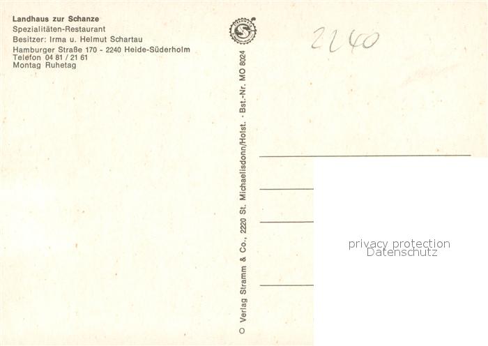 73642748 Suederholm Landhaus zur Schanze Restaurant postalisch nicht gelaufen Erhaltung siehe scans [FriedD77] KatCode: 11110001051044