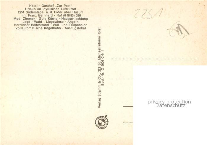 73667469 Suederstapel Ferien an der Eider Hotel Gasthof zur Post Luftkurort Fliegeraufnahmen postalisch nicht gelaufen Erhaltung siehe scans [FriedD77] KatCode: 11110001059085