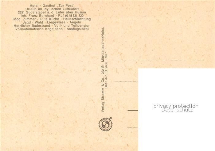 73670357 Suederstapel Hotel Gasthof zur Post Luftkurort an der Eider Badestrand postalisch nicht gelaufen Erhaltung siehe scans [FriedD77] KatCode: 11110001059085
